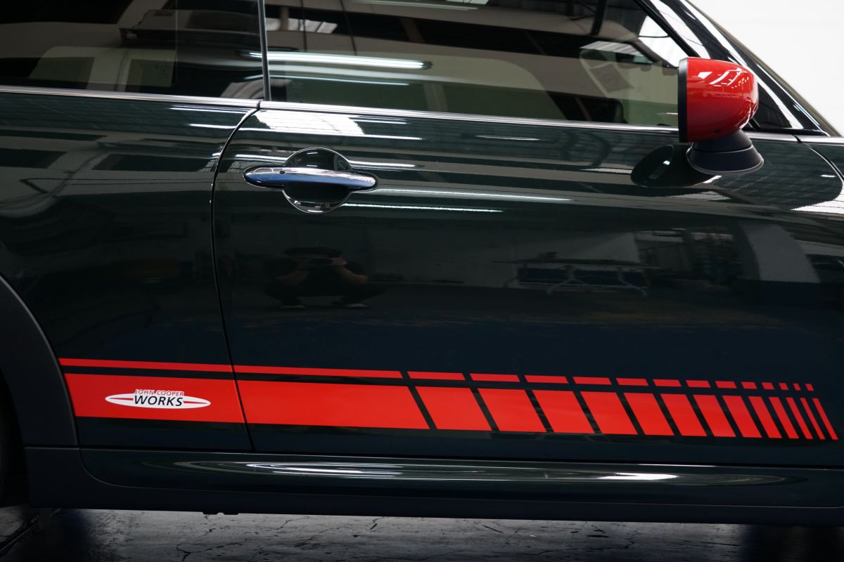 – สีเขียวเอกลักษณ์ JCW คาดแดง หลังคาแดง